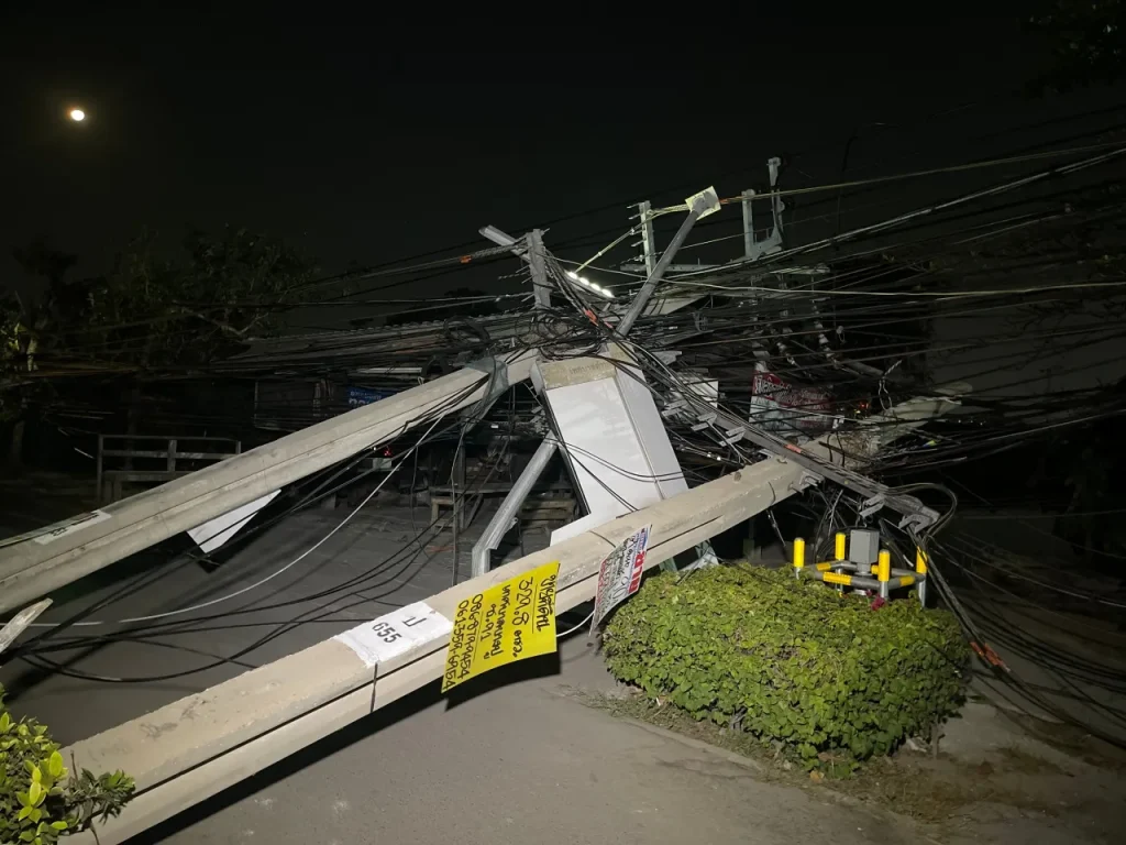 ဤဖြစ်စဉ်ကြောင့် အနီးအနားရှိ လူနေအိမ်များနှင့် စက်မှုဇုန်အတွင်း နေရာအတော်များများတွင် လျှပ်စစ်မီးများ ပြတ်တောက်သွားခဲ့သည်။ဘန်ကောက်မြို့တော် လျှပ်စစ်အာဏာပိုင်အဖွဲ့ (MEA) မှ ဝန်ထမ်း ၂၀၀ ကျော်သည် အခင်းဖြစ်နေရာသို့ ချက်ချင်းရောက်ရှိလာပြီး လဲကျနေသော တိုင်များကို ဖယ်ရှားခြင်းနှင့် အသစ်လဲလှယ်ခြင်းများကို ဆောင်ရွက်နေသည်။ ယနေ့ ညသန်းခေါင်အချိန်တွင် မီးပြန်ပေးနိုင်ရန် ရည်မှန်းထားသည်။ပျက်စီးဆုံးရှုံးမှု တန်ဖိုးမှာ ဘတ်သန်းပေါင်းများစွာ (ခန့်မှန်းခြေ ဘတ် ၁၀ သန်းခန့်) ရှိနိုင်ကြောင်း သိရသည်။
