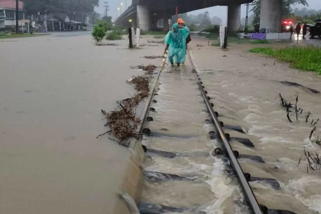 ထိုင်းနိုင်ငံ နခွန်စရီသမ်မရတ် (Nakhon Si Thammarat) ခရိုင်ရှိ ချောင်းခေါဝ် (Chong Khao) နှင့် ရွန်ဖီဘူးန် (Ron Phibun) ဘူတာရုံများအကြားရှိ ရထားလမ်းပိုင်းတွင် ရေကြီးမှုကြောင့် ရေအဆင့်သည် ကီလိုမီတာ ၇၇၅/၁၅ မှ ၇၇၆/၃ မှတ်တိုင်များ၌ ရထားသံလမ်းအပေါ် ၁၅ စင်တီမီတာခန့် မြင့်တက်လာသောကြောင့် ထိုင်းနိုင်ငံ မီးရထားလုပ်ငန်း (SRT) က အဆိုပါ ရထားလမ်းပိုင်းကို အရေးပေါ် ပိတ်လိုက်ကြောင်း ကြေညာခဲ့သည်။ ရေအဆင့် ဆက်လက် မြင့်တက်နေသောကြောင့် ရထားများ ပြေးဆွဲရန်အတွက် ဘေးအန္တရာယ် မလုံခြုံတော့ပေ။