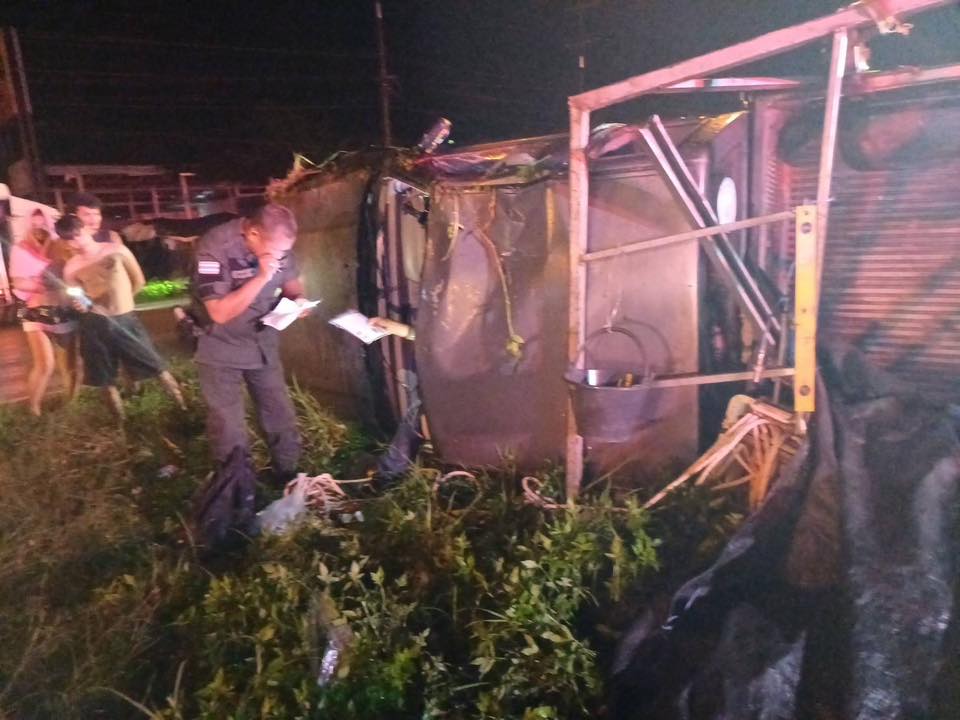 ထိုင်းနိုင်ငံ၊ ချဖွန်ခရိုင်၊ Lang Suan ခရိုင်ရှိ Wang Tako ရပ်ကွက်၊ အာရှ (၄၁) လမ်းမကြီးပေါ်တွင် မြန်မာနိုင်ငံသား အလုပ်သမား (၂၂) ဦး တင်ဆောင်လာသည့် ပစ်ကပ်ထရပ်ကားတစ်စီးသည် အခြားပစ်ကပ်ကားတစ်စီးနှင့် တိုက်မိပြီး လမ်းချော်တိမ်းမှောက်မှု ဖြစ်ပွားခဲ့ကြောင်း သိရသည်။