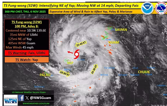 ထိုင်းမိုးလေဝသဌာန (TMD) က ၂၀၂၅ ခုနှစ်၏ ၂၆ ခုမြောက် အပူပိုင်းမုန်တိုင်းဖြစ်သော ‘ဖုန်ဝမ်’ (Fung-Wong) တိုင်ဖွန်းမုန်တိုင်း နှင့်ပတ်သက်၍ နောက်ဆုံး အခြေအနေကို ထုတ်ပြန်ခဲ့ပြီး ထိုင်းနိုင်ငံကို သက်ရောက်မှုရှိမည် မဟုတ်ကြောင်းအတည်ပြုခဲ့သည်။