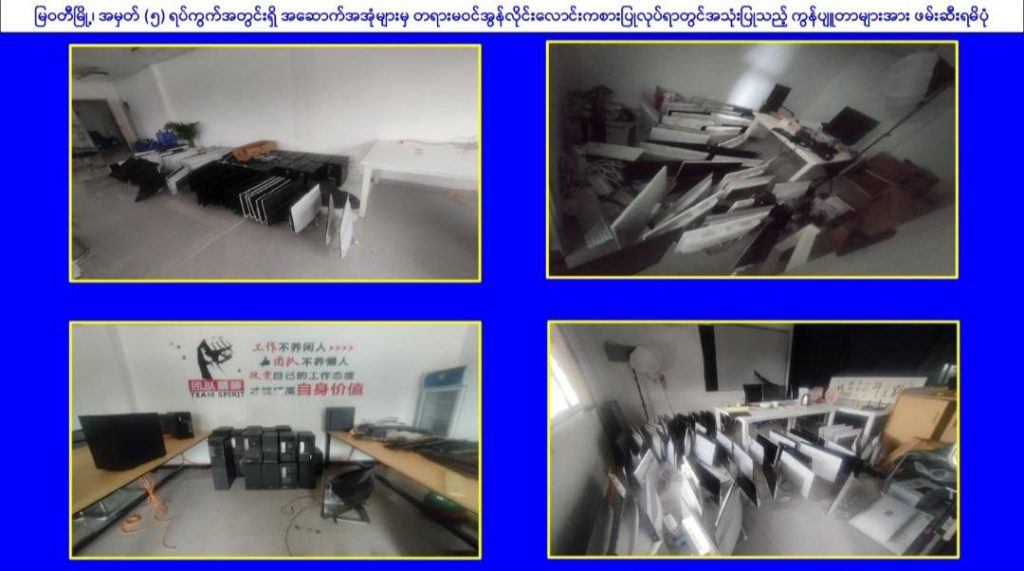 ဒီဇင်ဘာ ၁၂ ရက်တွင် အွန်လိုင်းလောင်းကစားလုပ်ငန်းများအတွက် အသုံးပြုခဲ့သော မြဝတီ-မဲထော်သလေး (KK Park) ဒေသ၊ Area 3 အတွင်းရှိ တရားမဝင် အဆောက်အအုံ ၁၇ လုံး (၄ ထပ် ၁ လုံး၊ ၃ ထပ် ၂ လုံး၊ ၂ ထပ် ၁၄ လုံး) ကို ဖျက်ဆီးခဲ့သည်။KK Park နှင့် ရွှေကုက္ကိုလ် ဒေသများရှိ အွန်လိုင်းလိမ်လည်မှုများတွင် အသုံးပြုသော ပစ္စည်းကိရိယာများကိုလည်း နောက်တစ်ကြိမ် အသုံးပြုနိုင်ခြင်း မရှိစေရန် စနစ်တကျ မီးရှို့ဖျက်ဆီးခဲ့သည်။