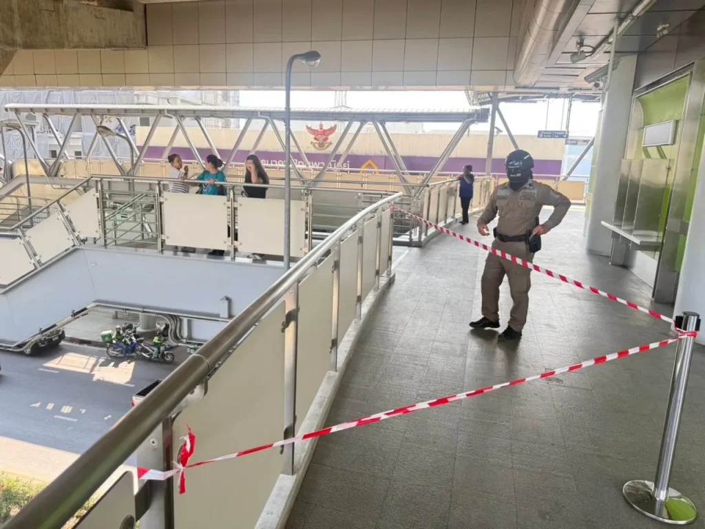 အသက် ၂၉ နှစ်အရွယ် ကားမောင်းသူ Thanakorn က သူကားမောင်းလာစဉ်မှာပဲ အမျိုးသမီးဟာ BTS ဘူတာပေါ်ကနေ လမ်းပေါ်ကို ပြုတ်ကျလာတာကို တွေ့ခဲ့ရကြောင်း၊ ကံကောင်းထောက်မစွာနဲ့ သူက ဘရိတ်အုပ်နိုင်ခဲ့လို့ ကားနဲ့ မတိုက်မိခဲ့ကြောင်း ထွက်ဆိုထားပါတယ်။အခင်းဖြစ်ပွားပုံကို မျက်မြင်သက်သေရဲ့ ကားရှေ့ကင်မရာ (Dashcam) မှာ မှတ်တမ်းတင်ထားနိုင်ခဲ့ပြီး ရဲတပ်ဖွဲ့က သက်သေအဖြစ် သိမ်းဆည်းထားပါတယ်။