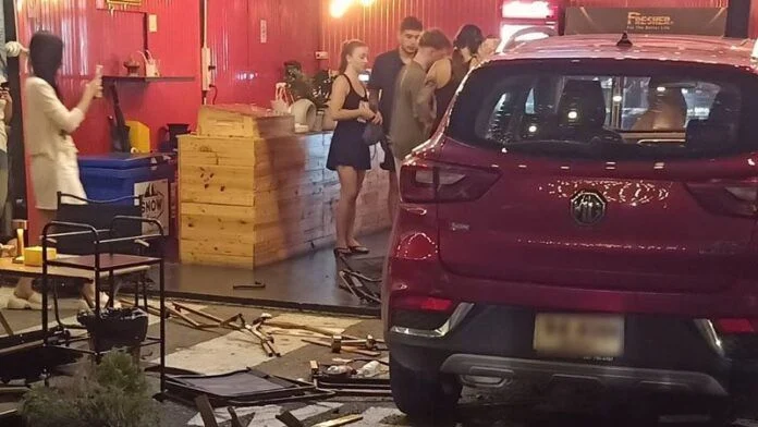 လုံခြုံရေးကင်မရာမှတ်တမ်းများတွင် ဒေသခံနှင့် နိုင်ငံတကာခရီးသွားများ စားသောက်နေချိန် ယာဉ်သည် ဆိုင်ကို ဝင်ရောက်တိုက်မိသည့် မြင်ကွင်းကို ဖမ်းယူရရှိခဲ့သည်။ ခရီးသွားများသည် ထိတ်လန့်တကြား ထွက်ပြေးခဲ့ကြပြီး နိုင်ငံခြားသားဧည့်သည်တစ်ဦးမှာ ကားတိုက်ခံရခြင်းမှ ကပ်၍ လွတ်မြောက်ခဲ့သည်။